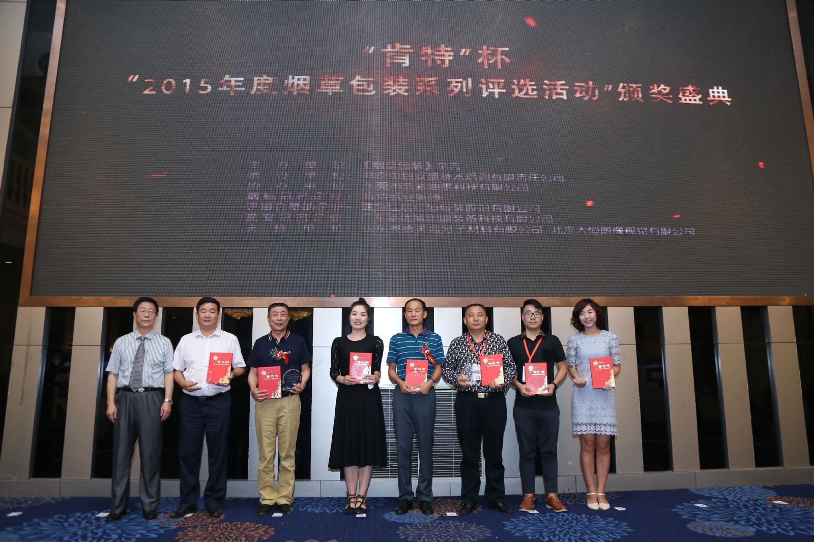 杭州品拓被評(píng)為“2015年度誠(chéng)信煙包供應(yīng)商企業(yè)”杭州品拓市場(chǎng)部經(jīng)理沈佳琦先生(右二)上臺(tái)領(lǐng)獎(jiǎng)